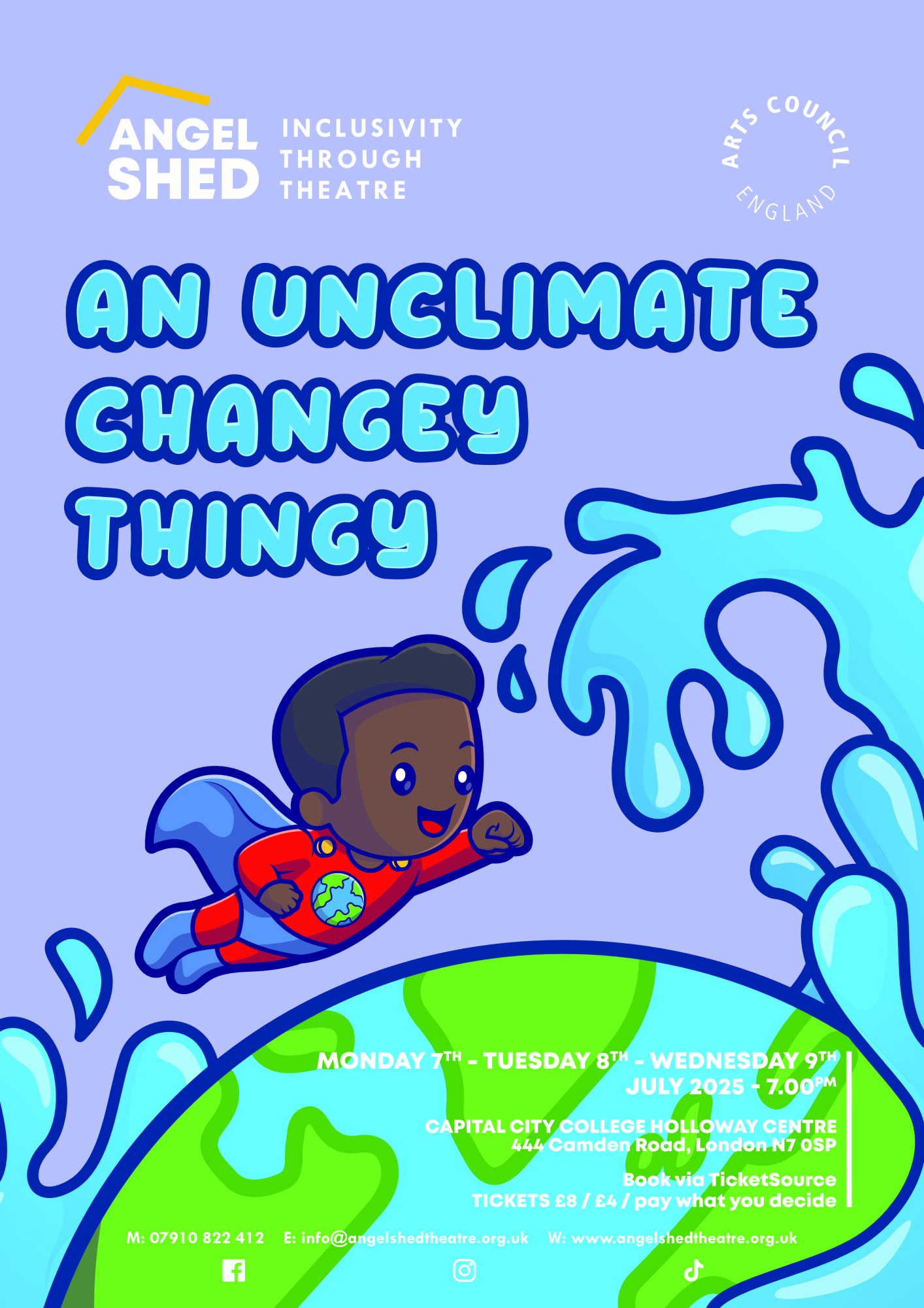 All performances are wheelchair accessible and relaxed (the auditorium lights are kept on a low level, there will be no loud noises or flashing lights, and you are welcome to come and go as you please). There will be additional sensory resources (e.g. weighted blankets, fidget toys) for audience members to use during the performance. This production is suitable for all ages. If you would like more information on access, please email info@angelshedtheatre.org.uk or call/message 07910 822 412.
